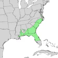 Turkey oak occurs on the coastal plain from Virginia south to central Florida, and west to southeast Louisiana, where it mingles with many tropical trees such as mature coconut palms and large Cuban Laurel (Ficus) trees.[5]