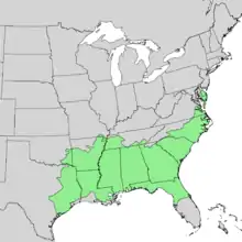 Quercus nigra, the water oak, is an oak in the red oak group (Quercus sect. Lobatae), native to the eastern and south-central United States, found in all the coastal states from New Jersey to Texas, and inland as far as Oklahoma, Kentucky, and southern Missouri.[3] It occurs in lowlands and up to 450 meters (1,480 feet) in altitude.