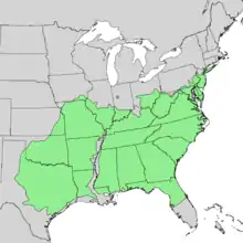 | Natural range of Quercus stellata | |