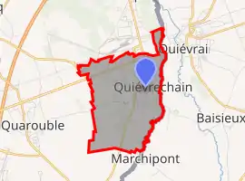 Quiévrechain is a border town, located 15 kilometres (9.3 mi) northeast of Valenciennes and 20 km (12 mi) from Mons, Belgium. Opposite is its Belgian sister town of Quiévrain.