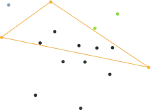 - The points lying inside of that triangle cannot be part of the convex hull and can therefore be ignored in the next steps.