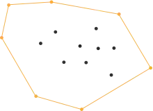 - Keep on doing so until no more points are left, the recursion has come to an end and the points selected constitute the convex hull.