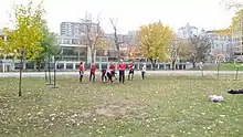 The first quidditch team within Canada was at McGill University where first years came together to start an ad-hoc club on campus.[1] Like many teams before and after their creation, McGill's team began on sticks from the local foliage as brooms with hoops being hula-hoops suspended from local trees serving as goals.[2] On October 26, 2008, McGill travelled to the States to be the first non-American team to compete in the second "Quidditch World Cup" where thirteen teams participated.[3] In 2009, McGill attended the third World Cup[4] with 22 teams, where they came in 12th place after having been defeated by the eventual victors, Middlebury College, in the quarter-finals.[3] Finally, in January 2010, Carleton University became the host to Canada's second quidditch team and the first in Ontario.[5] Also in January, McGill players travelled to the University of Toronto to help introduce the sport.[6] In March 2010, McGill and Carleton faced off at McGill in the first ever inter-university quidditch match in Canada with McGill winning two matches to one.[7] During the summer in July, Ryerson University formed their team.[8] In September of that year, the International Quidditch Association created a membership programme of which four teams; McGill, U of T, Ryerson and Carleton, became official IQA members.[9]