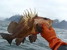 Rockfish as a group are important to the fishing industry as a food fish. Quillback rockfish have white, flaky meat with a delicate flavor, as befits deep-dwelling cold water species.[11] From Oregon to southeast Alaska quillback rockfish are an important part of the inshore sport commercial fishery and are also taken by party and private vessels and divers. They are often caught in deep, cold water by bottom fishing with herring or jigging. Most rockfish are landed in deep water by anglers using bottom-fishing tactics or mid-water drifting. These fish are not known for great battles or for large size, although the larger specimens may provide good sport.[11] According to the Oregon Department of Fisheries and Wildlife, the sport harvest of nearshore rockfish (such as quillback, copper and china rockfish) off the Oregon coast has been 6-12 metric tons annually between 2004 and 2009. This is within the sport harvest limits set to maintain the resource.[12]