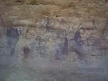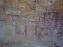 Quinkan rock art refers to a large body of locally, nationally and internationally significant Aboriginal rock art in Australia of a style characterised by their unique representations of "Quinkans" (an Aboriginal mythological being, often spelt "Quinkin"), found among the sandstone escarpments around the small town of Laura, Queensland (aka Quinkan region or Quinkan country).[1] Quinkan Country was inscribed on the Australian National Heritage List on 10 November 2018.[2]