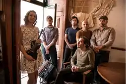 Former band members: Rui Dias (guitar | 1987–1992 ), João Coelho (drums | 1987–2000), Pedro Ferreira (keyboards | 1987–1990), Fernando Paulo (guitar | 1987–1988), João Portela (lyrics | 1989 - ), Alfredo Fonseca (keyboards | 1990–1993), Paulo Jorge (guitar/banjo | 1992–1995), Nuno Flores (violin/viola | 1993–2006 ) and Pedro Pimentel (keyboards/accordion | 1993–1997), Miguel Urbano (accordion/acoustic guitar/keyboard | 1997–2020).[13]