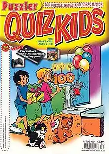Quiz Kids (sometimes Puzzler Quiz Kids) is a children's puzzle magazine. Launched in 1987, it is the longest-running magazine of this genre.[1][2] Based in the UK, each issue comprises crosswords, dot-to-dots, spot the differences, word searches, and various other challenges created for children aged 7–12.[1] The puzzles are created specially for the magazine, in line with the guidelines of the UK's National Curriculum.[3] As of 2015 Quiz Kids is published every 2nd Month.[2] It is also published in New Zealand.[3]