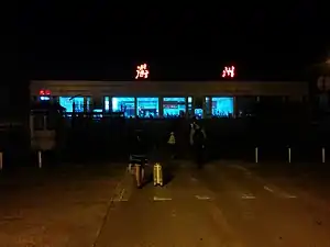 Quzhou Airport (Chinese: 衢州机场) (IATA: JUZ, ICAO: ZSJU) is a dual-use military and civil airport serving the city of Quzhou in Zhejiang Province, China. The airport is located 2.9 kilometers east of the city center and was opened to civil flights on 26 November 1993.[2] The public terminal is unique in being separated by a lake from the two aircraft bays, requiring passengers to walk across a lengthy causeway.
