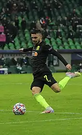 In September, Cabella scored in each leg of Krasnodar's play-off round 4–2 aggregate win against PAOK for qualification to the group stage of the UEFA Champions League.[31][32] It was the first time ever that the club had qualified for the group stage of Europe's premier knock-out competition.[33] Cabella would miss the first group stage match of the competition away to Rennes on 20 October as he was forced to self-isolate following a positive COVID-19 test.[34] Cabella scored his side's goal in their memorable 1–1 draw away to group winners Chelsea in the final match of the group stage, having already been parachuted to the Europa League Round of 32.[35]