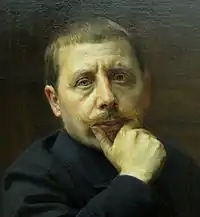 He was born in Mouscron. When he was thirteen, his father moved the family to France to take a job as a spinner in the industrial town of Roubaix.[1] He took his first art lessons at the local Academy. In 1876, he entered the École des Beaux-arts, where he studied under Alexandre Cabanel. Four years later, he was a candidate for the Prix de Rome, but it was discovered that he was still a Belgian citizen, so he returned to Mouscron, took temporary lodgings and applied for the Prix de Rome (Belgium) from the Royal Academy of Fine Arts (Antwerp).[1] He was awarded the prize in 1879 and received a gold medal for his painting The Aduatuci Sold as Slaves.[2]