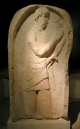 Other rulers of Assur attested in the Aramaic inscriptions from the Parthian period, though the order, dates and how (and if) they relate to the others is unknown, include Hormoz (Iranian name, his name and the title māryā are inscribed on a statue presumably depicting him),[23] Raʾehat Hayyay (Rāʾeḥat Hayyay, Arabic name, mentioned in an inscription),[18] Hanni (Ḥannī, name of Akkadian origin meaning "he took pity on me", mentioned as the father of a person depicted in a relief, whose own name is illegible)[24] and Nbudayyan (Nḇūḏayyān, name of Akkadian origin originally meaning "Nabu is judge", inscribed in multiple places, including on a statue).[6][25] Nbudayyan is the only of these four rulers who can be approximately dated, as one of the inscriptions mentioning him is dated to sometime after the 440th year (the full date is not preserved) of the Seleucid calendar, placing the inscription at some point in the interval AD 129–188.[6] The inscriptions also attest to Nbudayyan having a son, Awidʾallayy (ʿAwīḏʾallayy, "protection-seeker of Al-Lat"), and daughter, Maleka (Malekā, "queen"), both with Arabic names.[26] The line of local rulers at Assur under Parthian suzerainty came to an end at the latest with the conquests of the Sasanian Empire in the region, c. 240,[27] whereafter the Ashur temple was destroyed again and the city's people were dispersed.[2]