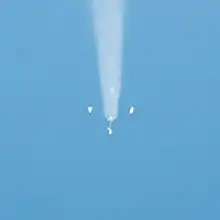 The Korolev Cross is a visual phenomenon observed in the smoke plumes of the R-7 series rockets during separation of the four liquid-fueled booster rockets attached to the core stage.[5] As the boosters fall away from the rocket, they pitch over symmetrically due to aerodynamic forces acting upon them, forming a cross-like shape behind the rocket. The effect is named after Sergey Korolev; the designer of the R-7 rocket. When the rocket is launched into clear skies, the effect can be seen from the ground at the launch site.