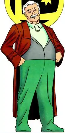 Originally a Durlan (shapeshifting alien) named Ren Daggle, Brande was frozen in human form by the deadly Yorggian fever. Later it was revealed that Ren and his deceased mate Zhay were the biological parents of Chameleon Boy and his twin, Liggt.[3][4] After the death of his wife, he leaves the children with Zhay's sister, Ji, and along with his brother-in-law, Theg, leaves Durla. Ren Daggle became R.J. Brande, Theg would become his cousin Doyle Brande (who would later indirectly cause the formation of the Legion by sending assassins after Brande). Permanently in a human form, he amassed a vast fortune by making stars, using advanced technology to create suns for clients. He became one of the richest men in the galaxy, and bought a private planetoid where he built his mansion. His right-hand-man was Marla Latham, who he would later assign to be the Legion's Adult Adviser. He becomes the major financier for the Legion of Super-Heroes, and founded the group with Cosmic Boy, Saturn Girl, and Lightning Lad after they saved his life from Doyle's hired killers on a trip to Earth.[1] He cared deeply for his Legion "pups", once offering Grimbor the Chainsman his entire fortune to ensure their safety.[5] After Earthwar, when the UP President embezzled his fortune, Brande rejected the offer of reimbursement, and started amassing a new fortune. Shortly thereafter, his parental link with Reep Daggle, Chameleon Boy, was discovered (but not publicly announced). The shock would drive Reep to rash actions which would ultimately lead to a brief incarceration on prison planet Takron-Galtos. While imprisoned, Reep lost his powers due to the high radiation exposure caused by Ol-Vir's super-vision. The pair fully reconciled when father and son returned to Durla to locate the legendary Temple which was said to reinvigorate lost shapeshifting abilities. While Reep eagerly stepped into the cascading energies, Brande refused, stating that he had grown fond of his human form.[6] Months later, he would survive yet another assassination attempt, this time arranged by Leland McCauley IV. This would lead Brande to undertake a long incognito personal odyssey which would last for several years.[7]