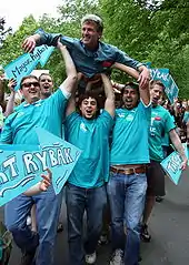 In his 2005 reelection campaign Rybak defeated challenger (and fellow DFLer) Peter McLaughlin by nearly 25 percentage points,[12] 61.5% to 36.7%.[13] He celebrated with another crowd-surf.[14]