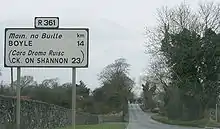The R361 road is a regional road mainly in County Roscommon, Ireland. South to north the route connects Williamstown to Boyle.