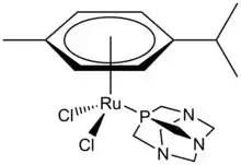 In a typical synthesis, [Ru (η6-p-cymene)Cl2] is reacted with 2 equivalents of PTA for 24 hours under reflux in methanol to yield to [Ru(η6-p-cymene)Cl2(pta)].[4]