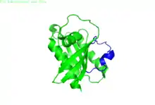 Rheb is a 21 kDa protein monomer composed of 184 amino acids.[5] The first 169 amino acids by the N-terminus make up the GTPase domain, and the remaining amino acids are part of a hypervariable region ending at the C-terminus in a CAAX motif (C – cysteine, A – aliphatic amino acid, X – C-terminus amino acid).[8]