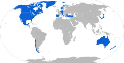 In 1968, Denmark, Italy, and Norway signed an agreement with the US Navy to use the Sea Sparrow on their ships, and collaborate on improved versions. Over the next few years a number of other countries joined the NATO SEASPARROW Project Office (NSPO), and today it includes 12 member nations.[4] Under this umbrella group, the "Improved Basic Point Defense Missile System" (IBPDMS) program started even while the original version was being deployed.