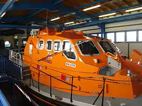 Lester ON 1287 is a Tamar class slipway launched lifeboat, designed to replace the Tyne-class lifeboat. The Tamar class lifeboat is the most advanced vessel in the RNLI fleet. The Lester ON 1287 is loaded with new technology, including fly-by-wire joystick steering, suspension seats to protect crew in severe weather, and an onboard computer system called Systems and Information Management System or SIMS. SIMS allows complex tasks such as engine and navigation management to be displayed on a single flat LCD screen, six of which are positioned around the vessel, to allow crew to operate all the systems without moving from their seats. In the stern section of Lester ON 1287 there is a built in recessed chamber which house a small inflatable daughter boat. Access to the inflatable daughter boat is by means of lowering the transom, and lifting a section of deck. This allows the tender to be launched and recovered on to a ramp provided by the lowered transom section. On the Lester ON 1287 the Y class boat has the official number Y-207. The lifeboat's hull was manufactured at Green Marine[2] in Lymington, Hampshire, and is constructed from Fibre reinforced plastic (FRP). The fitting out was completed at the yards of DML[2] in Devonport, Plymouth, Devon. The lengthy process of fitting out involves all the main components being fitted into the vessel and secured to their mounting points. Once this has been done the component units are removed from the hull leaving the mounts in place and the interior is then painted. The lifeboat was built at a cost of £2.5 million and was launched on 26 April 2007.[2]