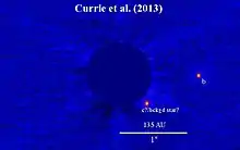 ROXs 42Bb is a directly imaged planetary-mass companion[1] to the binary M star ROXs 42B,[3] a likely member of the Rho Ophiuchi cloud complex. The companion was announced/discovered on October 17, 2013 by University of Toronto astronomer Thayne Currie.