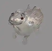 Since early 2000, Ottmar Hörl has created several works based on Dürer's Hare, including a giant pink version.[12] Sigmar Polke has also engaged with the hare on paper or textiles, or as part of his installations,[13] and even in rubber band form.[14] Dieter Roth's Köttelkarnikel ("Turd Bunny") is a copy of Dürer's Hare made from rabbit droppings,[15] and Klaus Staeck enclosed one in a little wooden box, with a cutout hole, so that it could look out and breathe. Dürer's Hare has even inspired a depiction of the mythological Wolpertinger.