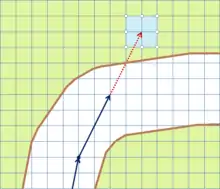 Alternatively, the track may be drawn with straight lines only, with corners at grid points only. This removes the need to decide dubious points. Players may or may not be allowed to touch the walls, but not to cross them.