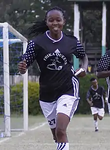 Rachael Muema (born 6 October 1999) is a Kenyan professional footballer who plays as a midfielder or Winger (football) for Kenyan Women's Premier League club Thika Queens and the Kenya women's national football team.[1] She has won the Kenyan Women's Premier League once [2][3] and was part of the Kenya women's national football team squad that participated in the 2020 Turkish Women's Cup[4]