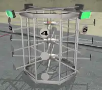 The Rack 'n Roll field is dominated by 'The Rack', a large metal contraption with three levels of hanging metal bars, with each level having 8 arms evenly spaced in an octagonal manner. Each arm (known as a 'spider leg') has space for two game pieces. Any more pieces placed on a spider leg beyond the first two are ignored for scoring purposes. At the beginning of the match, the rack is arbitrarily translated or rotated within three feet of the center of the field in order to give some randomness and to encourage autonomous modes that do not depend on dead-reckoning. At the top of the Rack are four green-colored lights above the 1, 3, 5, and 7 legs to aid in autonomous-mode tracking.