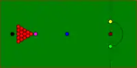 | In the rack | 15th ball: foot spot Cue ball: in kitchen |