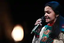 Some of her noted songs are "Arunakirana deepam", "Deva sangeetham", "Maya manchalil", "Kaithapoo manam", "Thiruvathira thira nokkiya", "Ente ulludukkum kotti" and "Ninte kannil".[9] Apart from film songs, she also sang 200 devotional songs.[10] She was also a noted TV anchor.[11][12]