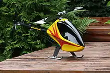 A radio-controlled helicopter (also RC helicopter) is model aircraft which is distinct from a RC airplane because of the differences in construction, aerodynamics, and flight training. Several basic designs of RC helicopters exist, of which some (such as those with collective pitch control) are more maneuverable than others. The more maneuverable designs are often harder to fly, but benefit from greater aerobatic capabilities.[1]