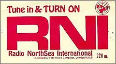 Radio North Sea International (RNI; German: Radio Nordsee International; Dutch: Radio Noordzee Internationaal) was a European offshore radio station run by the Swiss firm Mebo Telecommunications, jointly owned by Swiss engineer Edwin Bollier and his business partner, Erwin Meister.[nb 1] RNI broadcast for less than five years in the early 1970s and, courting both disaster and success, made a modest financial profit.[1]