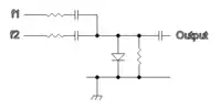 ![]() Frequency doubler A push-push frequency doubler. The output is tuned to two times the input frequency. |