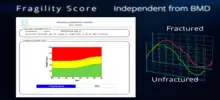 As widely reported in the scientific literature,[14] bone density is just one of the components of bone strength thus it only partially predicts bone fragility. In order to overcome this limitation, a novel parameter, Fragility Score, has been developed. Fragility Score evaluates bone microstructural features independently from BMD and it is based on the assumption that a fragile bone structure has microstructural features which, in turn, influence the spectral characteristics of the acquired ultrasound signal, being different from those reflecting a robust bone structure. Fragility Score is an adimensional parameter, ranging from 0 to 100, obtained by comparing the spectra of the acquired ultrasound signals with the spectral reference models obtained from patients who did, or did not, developed an osteoporotic fracture. This parameter has been validated through clinical studies and its accuracy has demonstrated a performance similar to DXA BMD.[15][16]