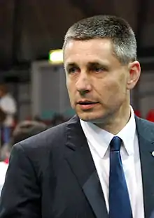 In 2007, Stoychev was appointed the manager of Trento-based Italian Volleyball League team Trentino Volley.[3] Stoychev attracted several of Bulgaria's top volleyball players to the club, such as Matey Kaziyski, Vladimir Nikolov, Smilen Mlyakov. In his debut 2007–08 season, he won the Italian national championship, an achievement comparable to the feats of Julio Velasco and Paulo Roberto de Freitas. In the following 2008–09 season, Trentino Volley's first season in the CEV Champions League, Stoychev led the club to the title in Europe's premier volleyball competition. The Bulgarian coach would sit on the bench of Trentino Volley until 2013. Stoychev in the season 2010-11 with Trentino won the FIVB Club World Championship, CEV Champions League and the Italian Scudetto. In 2011, Radostin Stoychev replaced Silvano Prandi and became head coach of the Bulgarian national team. He was released from his duties in May 2012, following a 1:3 loss against Germany during one of the qualification tournaments for the 2012 Summer Olympics. Nevertheless, Stoychev was reinstated as head coach a few days later following a heavily publicized media cross-fire between him, also supported by several of the team's star players, and the Bulgarian Volleyball Federation's Administration, which prompted the personal involvement of Boyko Borisov himself, the then Prime Minister of Bulgaria, in order to resolve the critical situation. Stoychev succeeded in qualifying the team for the 2012 London Olympics on his second attempt, but subsequently decided to step down due to a conflict of interest with the Bulgarian Volleyball Federation.[4] Stoychev in three consecutive years named Best coach of the year in Bulgaria 2010, 2011 and 2012.