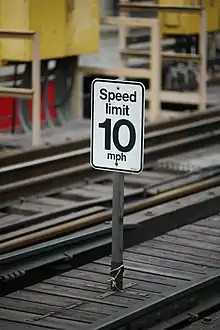| Wikimedia Commons has media related to Speed limit railway signs in the United States. |