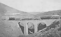 Wheat from the Hauran—high-protein semolina used in pasta[14]—was intended to be the mainstay of the railway's income, along with the Muslim pilgrimage trade during the Hajj.[11] The entry of American, Indian, and Australian wheat into the European market amid the continuing Long Depression, however, undercut that trade while the railway was still under construction.[14] Damascene traders had thought the Beirut railway would allow them to export their grain more cheaply; instead, as early as the 1894 harvest, the rail flooded the market, collapsing prices and margins.[15] Completion of the line to the coast did not improve matters, since the world market was trading at still lower prices[15] and the premium once commanded by Hauran wheat—which, being hand-harvested, might include pebbles or weeds—was now lost to machine-reaped grain from the United States.[14] It was not until 1908 that export values again reached the levels of the 1880s.[14] The railway itself was one of the best-managed in the Ottoman Empire: It had total receipts of $434,000 for 1900 and in 1906 received a guarantee from the government of $4320 per mile on the 200-mile Aleppo Railway[3] All the same, the company was never very profitable: it was at perpetual risk of bankruptcy; shares traded at 550 Fr in 1891 and only 468 Fr in 1909; and dividends were minuscule: 4.40 Fr in 1902 and 6.31 Fr in 1909.[15]