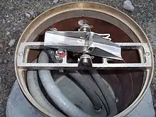 A weighing-type precipitation gauge consists of a storage bin, which is weighed to record the mass. Certain models measure the mass using a pen on a rotating drum, or by using a vibrating wire attached to a data logger.[7] The advantages of this type of gauge over tipping buckets are that it does not underestimate intense rain, and it can measure other forms of precipitation, including rain, hail, and snow. These gauges are, however, more expensive and require more maintenance than tipping bucket gauges.