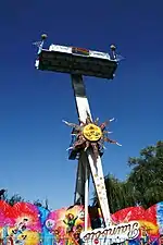| 07 | Yellow arm and supports with a white sun face, The mounted backdrop was formerly mounted on Schäfer's "Enterprise" Ride located in the same park.