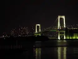 The Rainbow Bridge (レインボーブリッジ, Reinbō Burijji) is a suspension bridge crossing northern Tokyo Bay between Shibaura Pier and the Odaiba waterfront development in Minato, Tokyo, Japan.