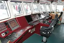 The vessel is the first Rainbow Warrior that is not converted from another vessel. Her hull was constructed in Poland and she was built in Germany, to provide state-of-the-art facilities for the group's use, including advanced telecommunication equipment, specialised scientific equipment and a helicopter landing pad.[6] The ship is also designed to be one of the "greenest" ships afloat, and to showcase this quality, it runs primarily using wind power, with a 55 m mast system which carries 1255 sq meters of sail. The ship also has Volvo Penta D65A MT 1850 HP diesel-electric engine and carries up to 110'000 litres diesel fuel.[7] On board the ship can store up to 59 cubic meters of greywater and blackwater, avoiding the need for disposal at sea. All materials, from the paintwork to the insulation, have been chosen with a view to sustainability, and each component has been supplied with transparent ethical sourcing.[2]