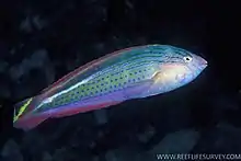 The rainbow slender wrasse (Suezichthys arquatus), also known as the painted rainbow wrasse,[2] is a species of marine ray-finned fish, a wrasse from the family Labridae. It is native to the western Pacific Ocean where it is found from Japan to Australia and east to New Zealand. It occurs on reefs at depths from 13 to 100 m (43 to 328 ft), usually over patches of sand. This species can reach 13.5 cm (5.3 in) in total length.[3]
