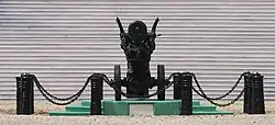 The Chinese cannon, mounted on a dragon and flanked with minor cannons, was brought from Nanking in 1842. An inscription on a marble plaque reads “The peace dictated to the Emperor of China under the walls of Nanking by the military force of England and of India.[8]”