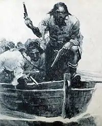 Huau got Paine and another reporter, Ernest McCready, on a boat smuggling munitions and soldiers to Cuba, the Three Friends under Captain "Dynamite" Johnny O'Brien. The Three Friends got into a skirmish with a Spanish gunboat and, in the only naval battle of the war, inexplicably triumphed. However, since the US was not participating in the war, O'Brien, fearing legal entanglements and seizure of his vessel, fled and left passengers and cargo on No Name Key. After filing his story in Key West, Paine managed to get on board the Dauntless, which came to retrieve the cargo under the supervision of General Emilio Núñez. He let Paine and McCready on board, but Núñez, annoyed by a delay they had caused, refused to let them off at Corrientes Bay and returned them to Jacksonville. Upon his return, he discovered that he was among those indicted for piracy (a capital crime) in the Three Friends incident. With the assistance of his father, Paine went into hiding for a month. However, one of the co-owners of the boat was powerful sheriff and future Governor of Florida Napoleon Broward. Thanks to his influence, no witnesses could identify any participants in the affair and the case was dropped. Paine gave the sword to José Huau, who had it delivered to Gómez's wife in Santo Domingo, and returned to his job at the Philadelphia Press.[2]: 130–136