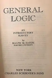 Eaton's first interests were in the scientific method and logic[3] and his first book, Symbolism and Truth (1925), was an epistemological study that used logic to explore philosophy. It was compared to Wittgenstein's Tractatus in its preoccupations. In General Logic (1931), Eaton dealt with symbolic logic as well as the Aristotelian idea of logic and inductive logic. On the basis of the works, Harvard promoted Eaton to associate professor in February 1930. Soon afterwards he was found in his room drunk and depressed over the failure of his marriage. As a result, in March the university withdrew his promotion, declared him emotionally unstable, and put him on leave until the start of the 1931–32 academic year. In addition, his contract as an assistant professor was not renewed at the end of that academic year.[2] He became interested in psychoanalysis and the break from his Harvard duties allowed him to translate and write a preface to Secret Ways of the Mind by Wolfgang Müller Kranefeldt, with an introduction by Carl Jung, which was published in early 1932.[5] During this time he worked closely with Jung, spending time with him in Zurich, and allowing Jung to interpret his dreams.[5][6][7]It is possible that Eaton may have suffered from PTSD after his experience in the trenches of World War I.
