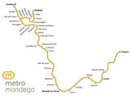 During the 1990s the Metro Mondego project was planned, with the intention of replacing the Ramal da Lousã with a light rail system. The section Miranda do Corvo–Serpins was closed on 1 December 2009, and the section Coimbra–Miranda do Corvo on 4 January 2010, with buses replacing the service.[3] The section from Coimbra-B to Coimbra was not closed, making Coimbra the terminus again. The construction of the Metro Mondego started, but was stopped due to the 2010–14 Portuguese financial crisis. In 2017, the Portuguese government changed the plans for Metro Mondego, renaming it Sistema de Mobilidade do Mondego: instead of a light rail, it is to be a guided bus system.[4] The line from Coimbra-B to Coimbra is due to close by the end of 2020, and the new system is planned to be operational in 2021.[5]