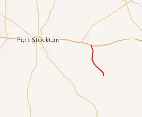 The current route in Pecos County was designated along its present extent on November 24, 1959. The road previously terminated at US 290, the predecessor route to I-10 through much of western Texas.[1]