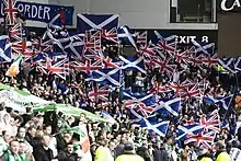 Rangers supporters have traditionally been identified with the Protestant and Unionist community in Scotland, as well as in Northern Ireland. The club has a global fan-base, with a worldwide spread of over 600 supporters clubs ranging from North America, Australasia and the Middle East to those closer to home in the United Kingdom.[1] In season 2012–13, Rangers recorded the 18th highest average league attendance in Europe. In 2006, Rangers was one of the best-supported clubs in the UK with an estimated 5.4 million supporters.[2] Rangers have an estimated worldwide fanbase in excess of 9 million supporters.
