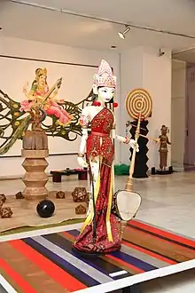In 2013, Makkuni launched Musical Landscapes and the Goddesses of Music at the National Museum, New Delhi.[43][44][45][46][47][48] This exhibition explores the science, art and spirituality of Music, and its reflections in the Goddess images across Asian cultures. An expanded version titled Music and Goddess was presented in 2014 at the National Gallery of Modern Art, Mumbai.[49] [50] [51] [52]