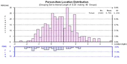 The Rasch model, named after Georg Rasch, is a psychometric model for analyzing categorical data, such as answers to questions on a reading assessment or questionnaire responses, as a function of the trade-off between (a) the respondent's abilities, attitudes, or personality traits and (b) the item difficulty.[1] For example, they may be used to estimate a student's reading ability or the extremity of a person's attitude to capital punishment from responses on a questionnaire. In addition to psychometrics and educational research, the Rasch model and its extensions are used in other areas, including the health profession,[2] agriculture,[3] and market research[4] because of their general applicability.[5]